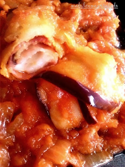 Esta vez quise acompañarlos con otra receta deliciosa, rollitos de pollo al vino, que están estupendos y tan fáciles de hacer, como los tomates confitados...