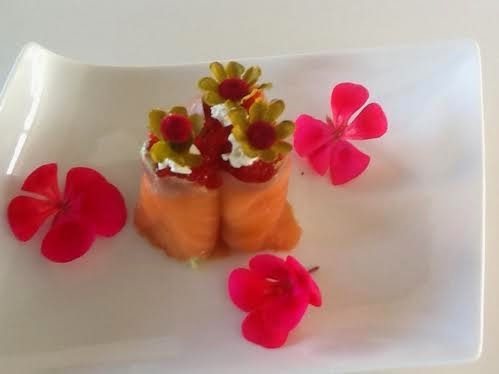 "Hola chicos!! Hoy tengo una receta de lo mas alegre y sabrosa, de esas que te da pena comértelas de lo bonita que es. Hoy hace un día perfecto para cocinarla, hace un sol de primavera y me apetece cocinar un plato alegre, con colores vivos y rodeada de flores.