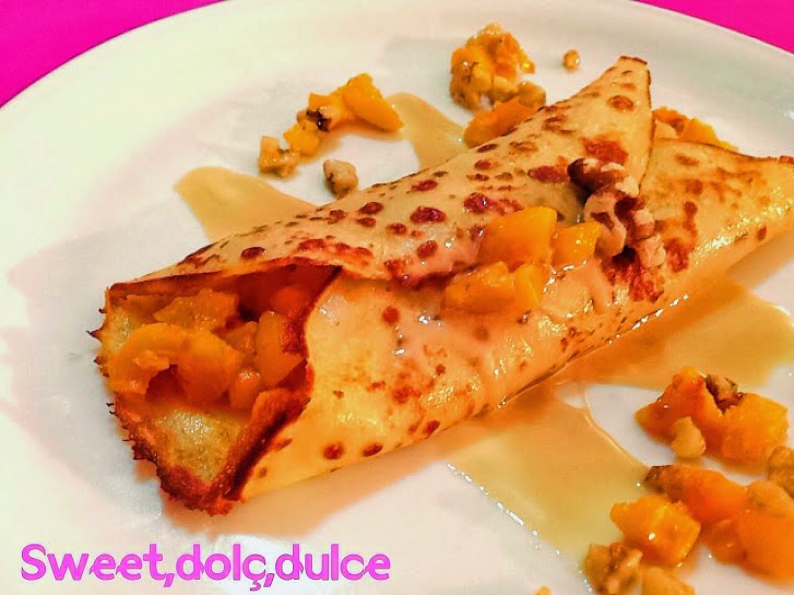 Creps de nísperos con nueces y cremade café del Blog Sweet,Dolç,Dulce